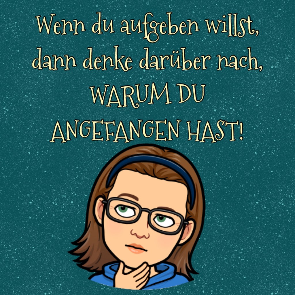 Und warum habt ihr angefangen? Vielleicht macht ihr euch ebenfalls eine Liste und schreibt einfach mal auf, warum ihr angefangen habt, auf was ihr hin arbeiten möchte und ob es sich lohnt einfach aufzugeben.